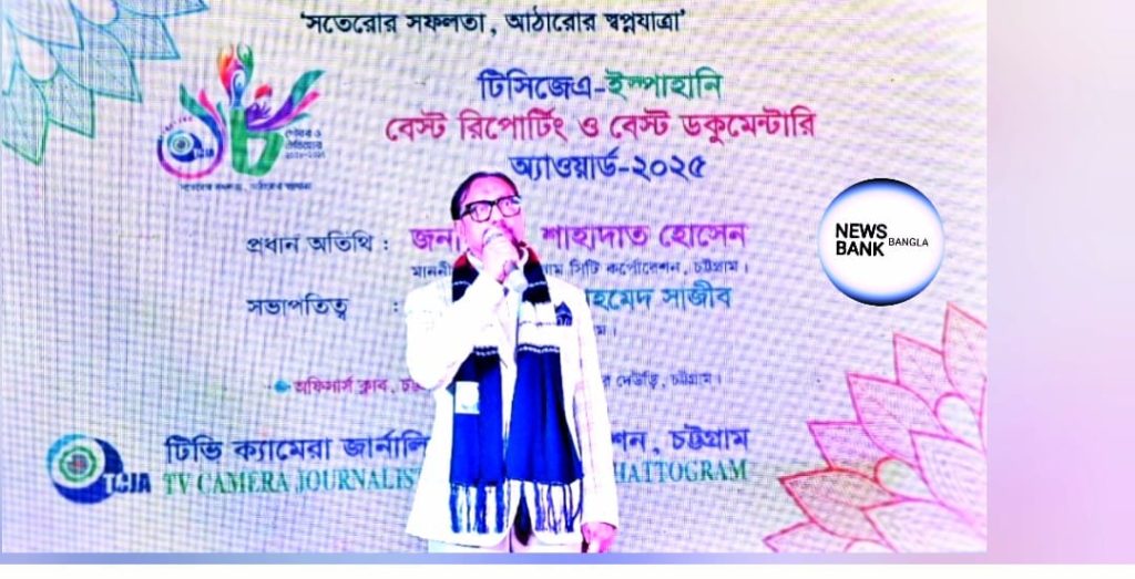 অনুষ্ঠানের প্রধান অতিথির বক্তব্য রাখেন চট্টগ্রাম সিটি মেয়র ডা. শাহাদাত হোসেন -নিউজ ব্যাংক বাংলা